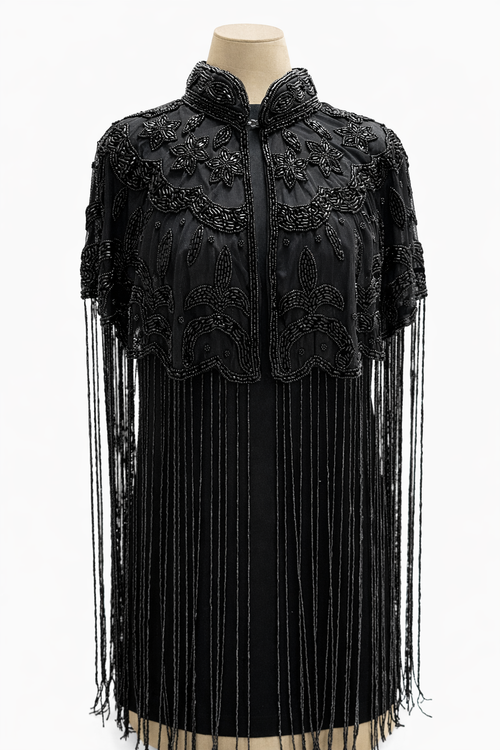Taupe Satin Open Abaya Cardigan with Silver Trim -