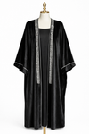 A lightweight open-front beige cardigan featuring a bold multicolor geometric trim for a stylish pop of detail—perfect for effortless layering and modest everyday wear.